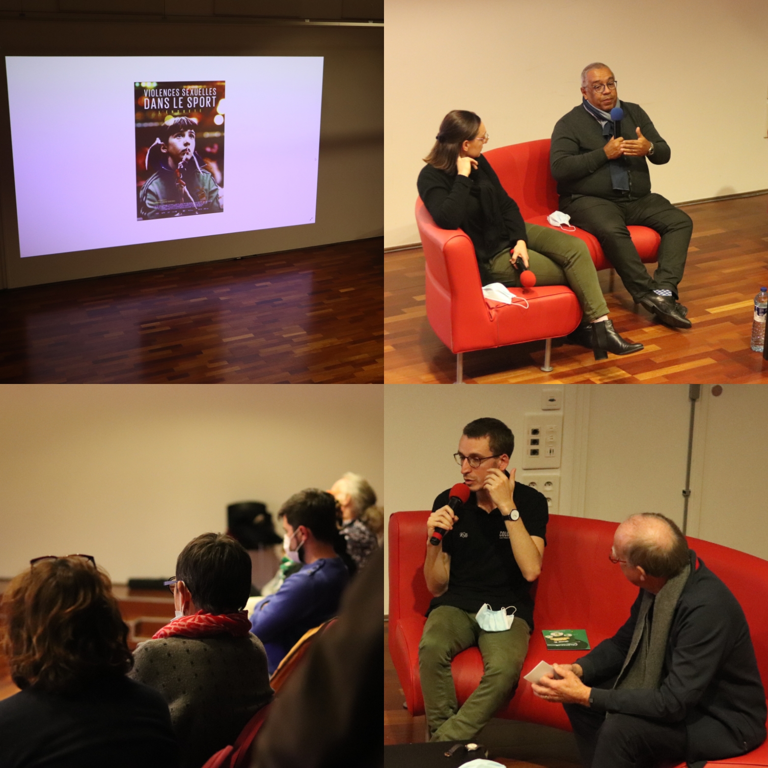 S’est tenue le Samedi 6 Novembre la projection du film Violences sexuelles dans le sport, l’enquête. ESSENTIEL a par la suite eu le plaisir d’accueillir Marie Gomez, Psychologue du sport, Didier Esor, Président de la ligue de football des Pays de la Loire et Fabien Robert Intervenant régional de l’association Colosse aux pieds d’argile, pour des échanges avec le public autour des questions de prévention des violences dans le milieu du sport.